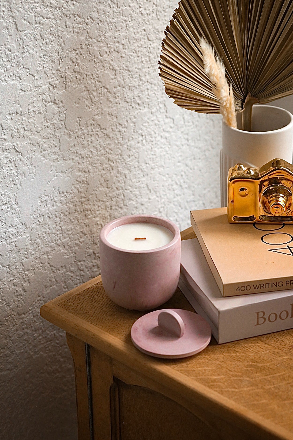 Experience the artisanal elegance of our candles, meticulously hand-poured from 100% gluten-free, toxin-free, paraben-free, and phthalate-free coconut and apricot wax. Featuring a wooden wick for a clean burn, these candles are encased in industrial-chic concrete jars with visually striking bubbles, and color variations.